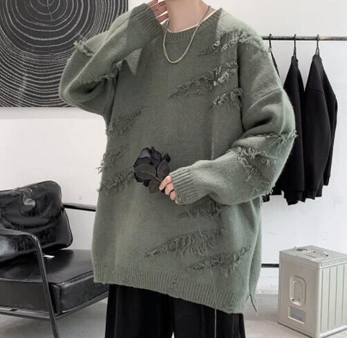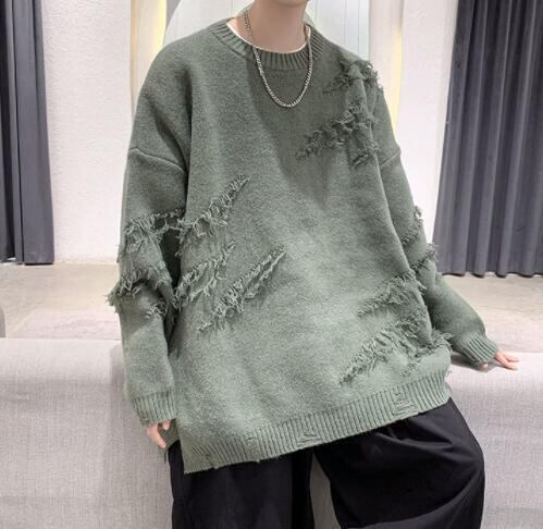 メンズ トップス ニット セーター クルーネック ダメージ加工