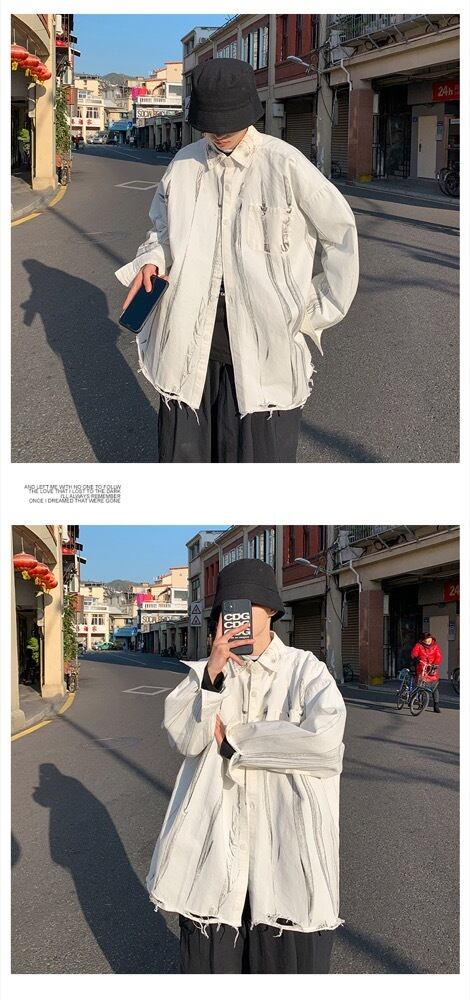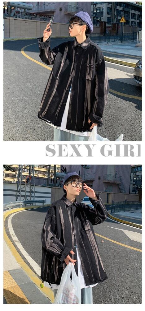 トップス シャツ 長袖 アウター ジャケット リラックス 春夏 ゆったり メンズ 韓国ファッション
