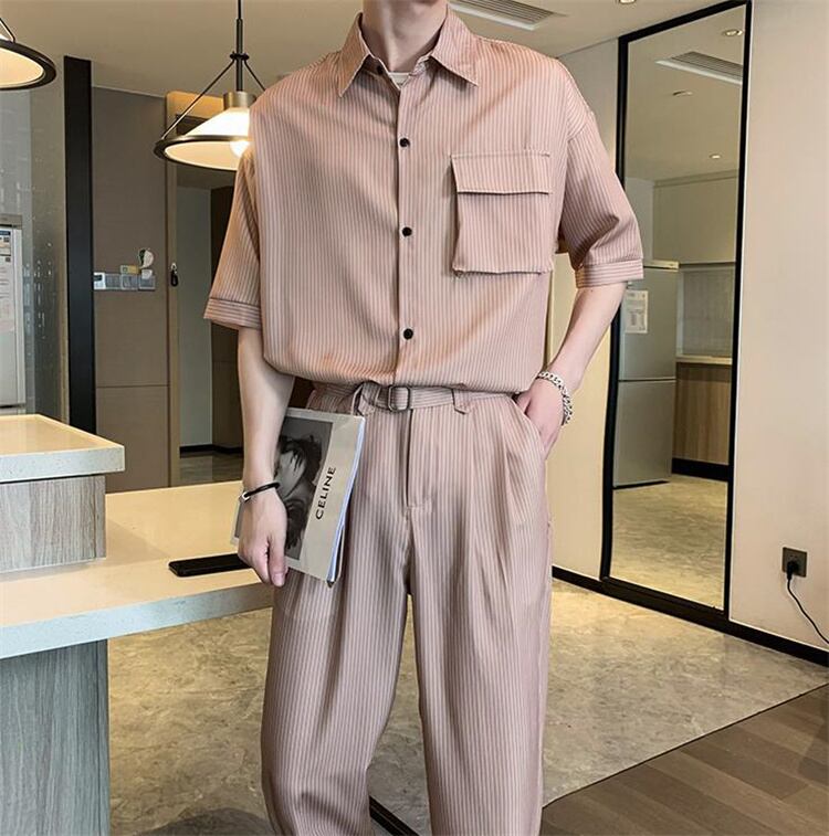 大人カジュアルを極める 半袖 九分丈パンツ ストライプ セット ファッション カジュアル スリム