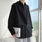 トップス アウター ジャケット ブレザー シャツ レイヤード ゆったり メンズ