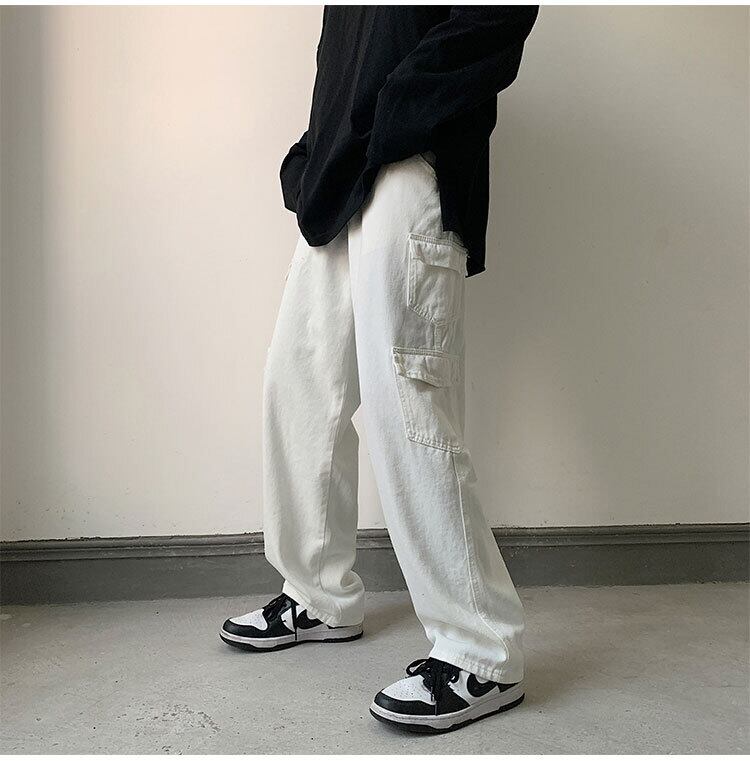 ワークウェア ワイドレッグ デニム ポケット多数 ストレートパンツトレンドジーンズ