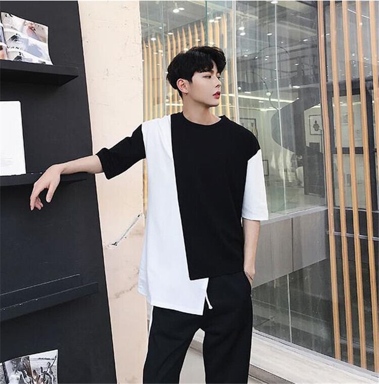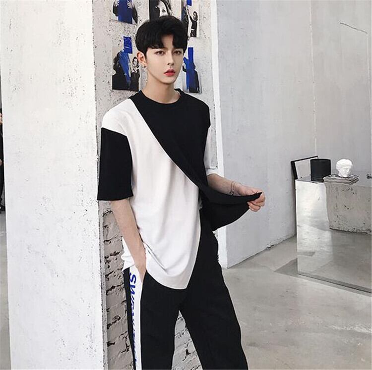 スリム 半袖 個性 百掛け 大人気 トップス デザインセンス 白黒ステッチ